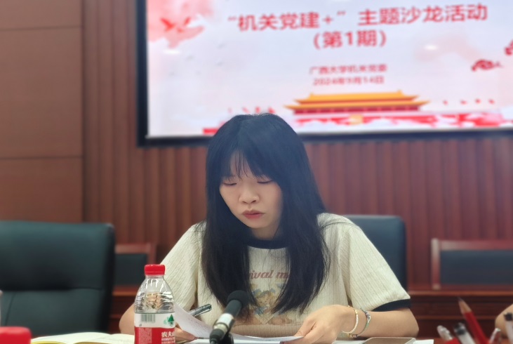 在交流研讨环节中,宣传部党支部组织委员李真、人力资源处党支部组织委员农添珍、发展规划处党支部组织委员周嫱、教务处党支部组织委员方晓丽、财务处党支部组织委员彭浏蒨分别结合部门业务工作,分享了支部如何以高质量党建促进部门业务高质量发展的具体做法和心得体会。其他组织委员围绕党建促进业务工作以及工作中存在的问题困难进行了研讨交流。